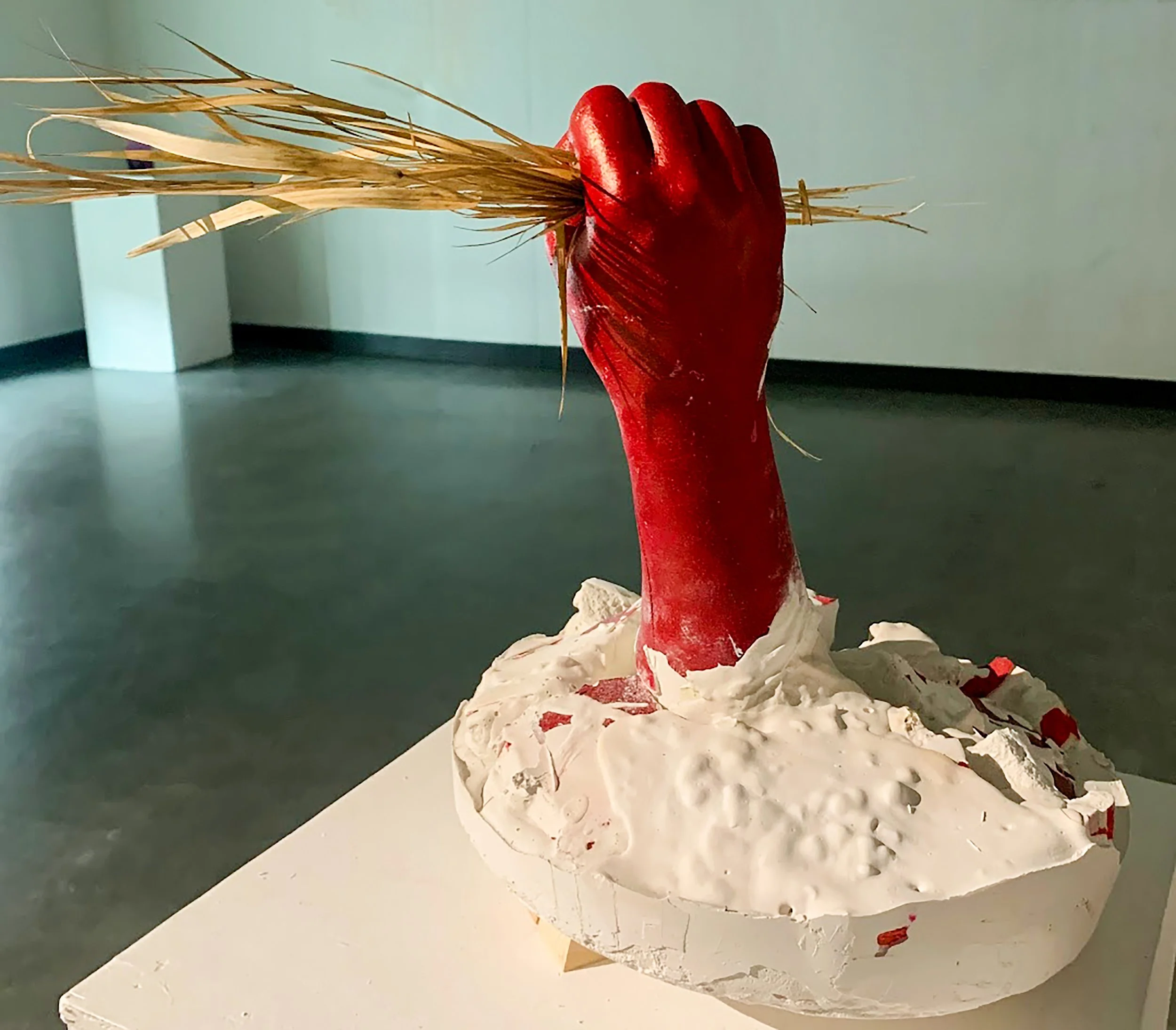 Erasers, charcol, gel medium, gloss gel medium, acrylic